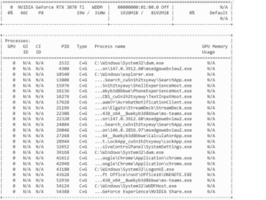 I needed to find out what was running! Running the following command, “nvidia-smi” will provide an output of everything using the GPU.